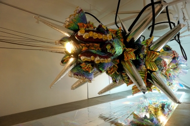 크리처(CREATURE), 2023, 에어모터, 오로라필름지, 비닐, 포장용 플라스틱 등 혼합매체, 가변설치