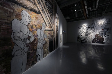 로봇과 인공지능의 출현으로 존엄성을 위협받는 인간, 덧없는 욕망을 쫓거나 현실의 깊은 구덩이를 피하기 위해, 사회의 새로운 시스템과 제도 사이를 살얼음판 걷듯 나아가는 현실의 힘겨운 상황을 목도하게 된다. 그러나 그러한 좌절과 절망에서 벗어나려는 희망의 몸짓들은 외부 현실로 인식되는 4점의 대형 작품 사이에 존재하며, 격정적이고 역동적인 몸으로 표현된다.