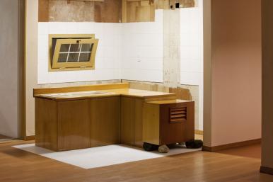 유령은 좋아질 거야, 2005, 비닐장판, 페인트, 나무, 제스모나이트, 50 x 400 x 180 cm, 2005년 1차 복원, 2016년 2차 복원, 2022년 작품 일부인 유토 원본을 제스모나이트로 캐스팅, 사진: 정연두. ⓒ 2005, 정서영.
