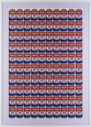 re. 100 Campbell's Soup Cans, 광고용 스티커, 아크릴 보드, 166x118cm, 2012