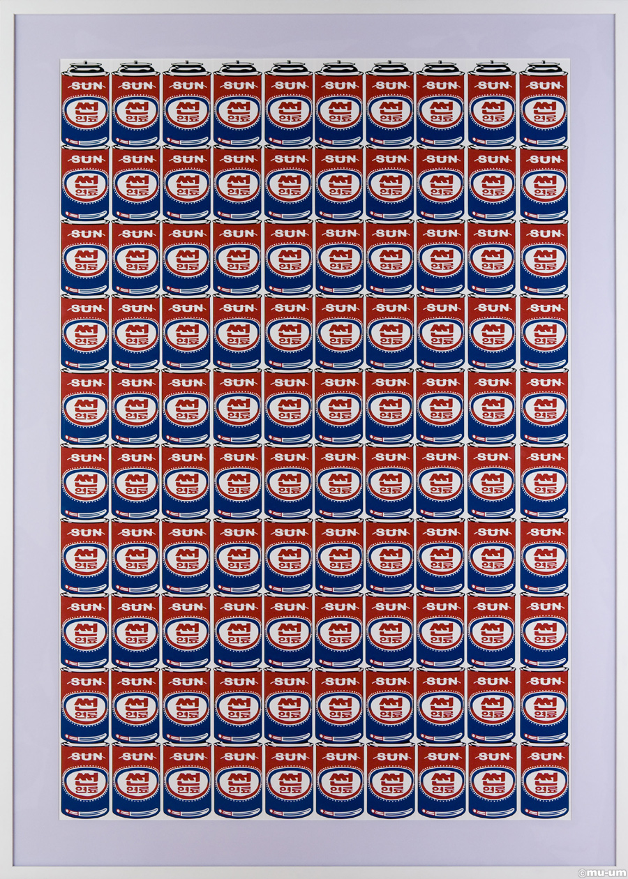 re. 100 Campbell's Soup Cans, 광고용 스티커, 아크릴 보드, 166x118cm, 2012