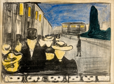 카를 요한 거리의 저녁, 1896-7 종이에 석판, 수채물감 ⓒPrivate Collection, Norway courtesy of Peder Lund.