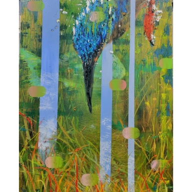 싱싱한 초록이 우거진 평화로운 화면 속, 자연의 상징물들이 저마다의 포지션을 취하며 놓여있다. 작가는 자연의 공간 속에 사람과 동물을 상징적 요소로 재현하여 곳곳에 등장시킨다. 촘촘이 포개진 풀숲은 매우 치밀하고 사실적이지만 색과 면을 단순화하고 빛을 생략하기도 하면서 평면적 공간으로 구성된다. 이 공간 안으로 작가의 재해석된 상징적 요소들이 낯설어하지 않는 편안한 모습을 하고 숲속에서 공존하고 있다.