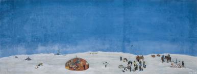 몽골-하늘과 길, 한지에 채색, 87x230cm, 2007