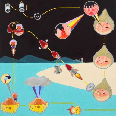 A Heart Containing the Universe, 2024, Acrylic on korean cotton, 53x45.5cm