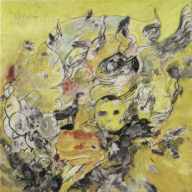 그림의 행간은 자신의 내적 사유가 실재계에서 경험과 환시, 허구가 손깎지를 끼는 것처럼 일어난다.