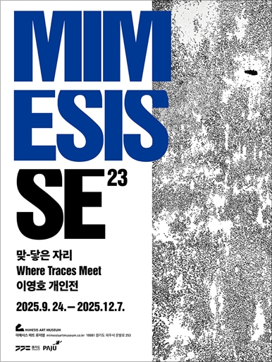 미메시스 아트 뮤지엄은 이영호의 개인전 「MIMESIS SE 23: 맞-닿은 자리 Where Traces Meet」를 개최한다. 이영호는 일상에서 마주하는 대상이 현존하는 방식을 탐구해 왔다. 작가는 관찰한 존재가 고정된 실체가 아닌, 끊임없이 변모하는 현상 속에 있다고 보고 대상의 주변부에서 생성과 탈각의 흔적을 포착한다. 그의 작업 방식은 조리개를 활짝 열고 셔터 속도를 늦춰 피사체의 미묘한 흔적까지 기록하는 촬영 기법을 떠올리게 한다. 이는 주변의 사소한 것을 있는 그대로 바라보고 그 본질을 고스란히 기억하기 위한 방식으로 볼 수 있다. 작업 초기에는 세포처럼 미시적이고 드러나지 않는 경계의 이면에 시선을 두었으며, 점차 피부나 껍질과 같은 경계의 표면으로 시야를 확장해 나갔다. 이번 전시는 최근작에서 초기작으로 거슬러 올라가는 구성을 통해 작가가 대상의 흔적을 탐구해 온 여정을 되짚어 보고자 한다.