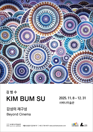 사비나미술관(관장 이명옥)에서 개최하는 김범수 작가의 본 전시는 디지털 상영 시스템의 도입과 함께 더이상 사용되지 않는 아날로그 영화 필름을 현대미술의 매체로 재구성하여 과거와 현재, 감정과 기억, 평면과 입체의 경계를 넘나드는 새로운 시각 경험을 제시한다. 아날로그 영화필름은 과거 시대를 살아간 사람들의 꿈, 갈등, 욕망, 사랑을 담고 있는 타임캡슐과 같다. 작가는 35mm, 16mm, 8mm 등 다양한 규격의 폐필름을 잘라내고 조합하여 좌우 대칭의 기하학적 패턴과 원형 구조 등 회화적 구성을 통해 평면에 고정시킨다. 물리적으로는 평면적인 필름 조각들이지만 배열과 중첩, 조명과의 상호작용을 통해 입체적 층위와 시지각적 깊이를 만들어낸다. 이는 영화가 가진 시간성과 서사성에서 벗어나 기억과 감정을 정지된 조형언어로 변환하는 작업이다. 작품 안쪽에서 비추는 LED 조명은 필름 속 숨겨진 이미지들을 드러내며 관객들을 시간여행에 초대한 듯한 몰입적 경험으로 이끈다. 폐기된 필름이 회화적 언어로 다시 태어나는 과정은 현대미술이 망각된 기억을 소환하고 시대를 재해석하는 매개체가 될 수 있음을 보여준다.