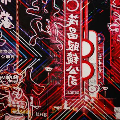 미드나잇 상하이 1 M idnight Shanghai 1, 2017, 장지에 혼합재료 Mixed media on oriental paper, 100 x 100 cm