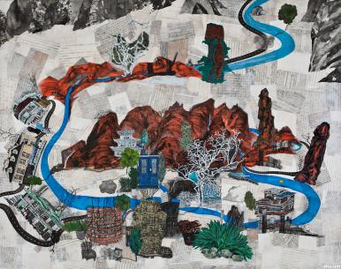 Heart-Land 1, 한지에 고서꼴라쥬, 수묵채색, 아크릴, 181.5x228cm, 2013