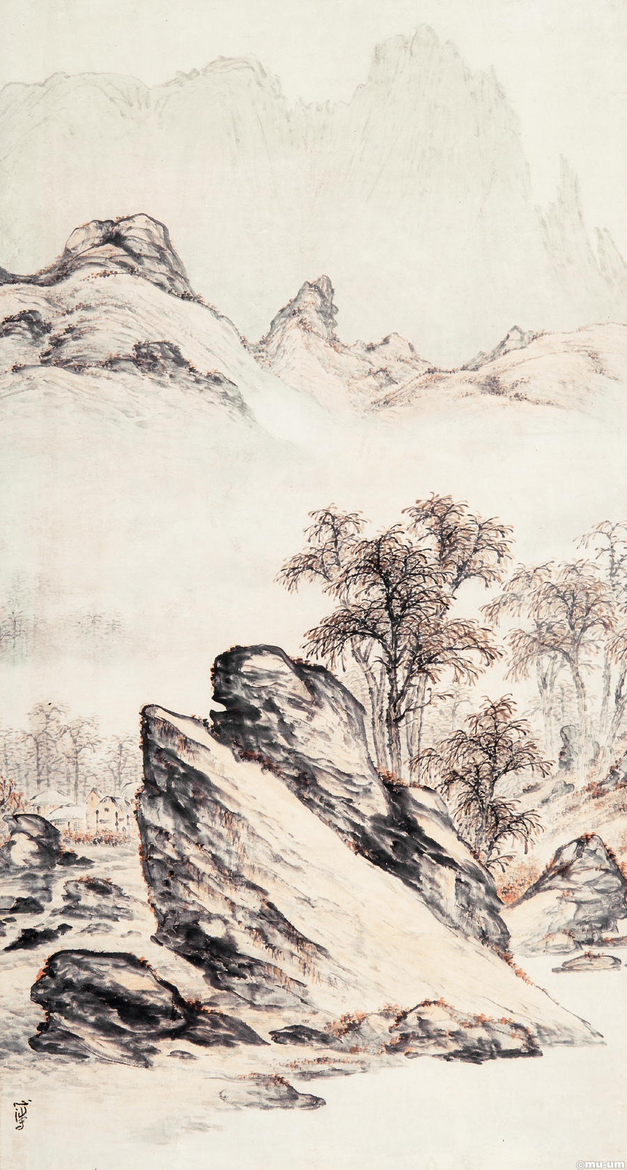 산수도, 한지에-수묵담채_33×114cm_1900년대