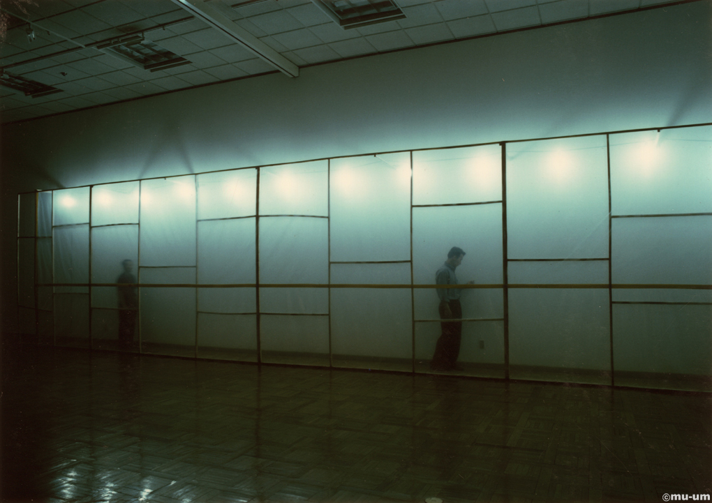 무제 (샌 안토니오의 하늘), 4 Video cameras, 4 video projectors, cut out wall made of wood and plaster boards, 38x333x370cm, 2000