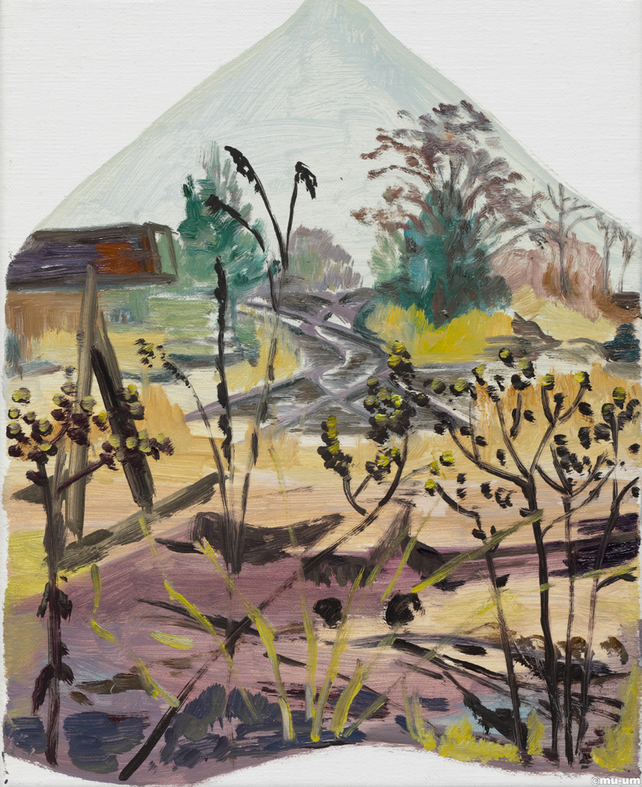 어느 야산의 묘지 앞에 앉아, 2015, 캔버스에 유화, 33x24cm