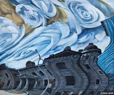 트윈 픽스의 로라 파머인가? 등 돌린 여인은 언어(의미)를 잃어버린 채 미지의 차원의 세계에 떨어져 자기가 본래 있었던 세계를 찾는다. 그러나 그녀 자신은 자신이 죽었는지 또는 살아있는지 알 수 없다. 밝음도 어둠도 아닌 회색의 공간, 회색의 감각이 서울역과 여인과 빌딩과 하늘을 뒤엎고 있다. 이 세계는 붉으나 붉지 않고 노랗지만 노랗지 않다. 현실의 모든 색과 형태는 회색으로 환원된다. 초현실주의자들이 현실을 너머선 상태를 통해 지금 현실을 비평하고 반성하는 것처럼, 작가는 뒤엉킨 세계로 넘어가는 운동을 통해 일상과 현실 속의 자신을 되돌아본다. 자기 자신을 바라보는 거리를 갖는 것이 곧 반성과 성찰을 위한 첫 단추이다. 우리는 또는 작가는 언제나 자기 자신을 인지하고 있지만 그것은 어디까지나 오류이거나 환영이라는 사실을 느끼게 된다. 그것이 논리적 인식이건 또는 감각의 논리의 결과이건, 자기 자신의 리얼리티를 찾는 것은 오랜 과제이며 마주하고 있는 것이다. 그것은 길을 막는 벽일 수 있고 또 우연히 다가온 기회일 수도 있다. 자기 자신을 있는 그대로 바라볼 수 있는 기회는 매우 희귀하다. 예외적인 사람들을 제외하고는 자기 자신의 변형되고 왜곡된 상(IMAGE)와 접촉할 뿐이다. 그러므로 우리는 항상 불안과 불신을 옆에 달고 있는 것이다. 사회 속의 예술은 이로부터 자유롭지 못하다.