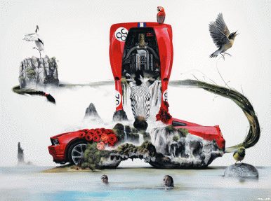 Metamorphosis, Mixed media on printed canvas, 145x104cm, 2014