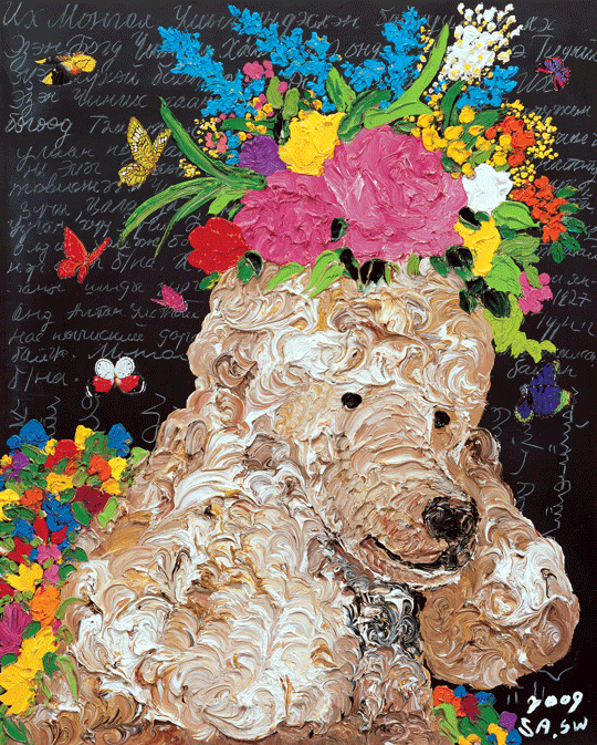 1003-02 푸들, Oil and mixed media on blackboard, 100x80cm, 2009