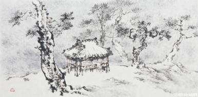 松亭, 한지 수묵담채, 32.5x66cm, 2010