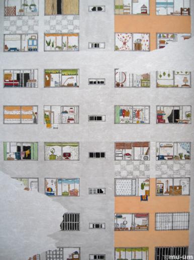 아파트-채우다, 종이에 먹 채색, 130.3x97cm, 2010