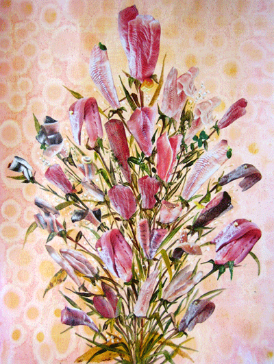 화단(세부), 종이위에 유화, 콜라쥬, 109x234cm, 2011