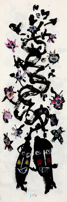 꽃과 벌레, 한지에 먹, 분채, 아크릴릭, 143x73cm, 2009, 개인소장