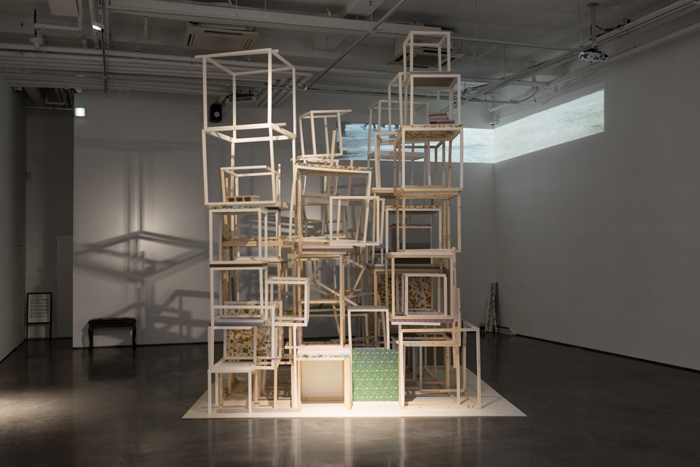 낭패 wolf and wolf, wood blocks, Styrofoam, tape, cloth, helmet, drill, and etc.,, size variable, 2017