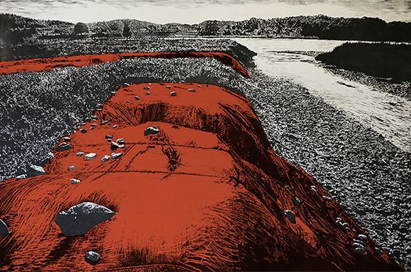붉은 풍경, 리노컷, 150x210cm, 2017