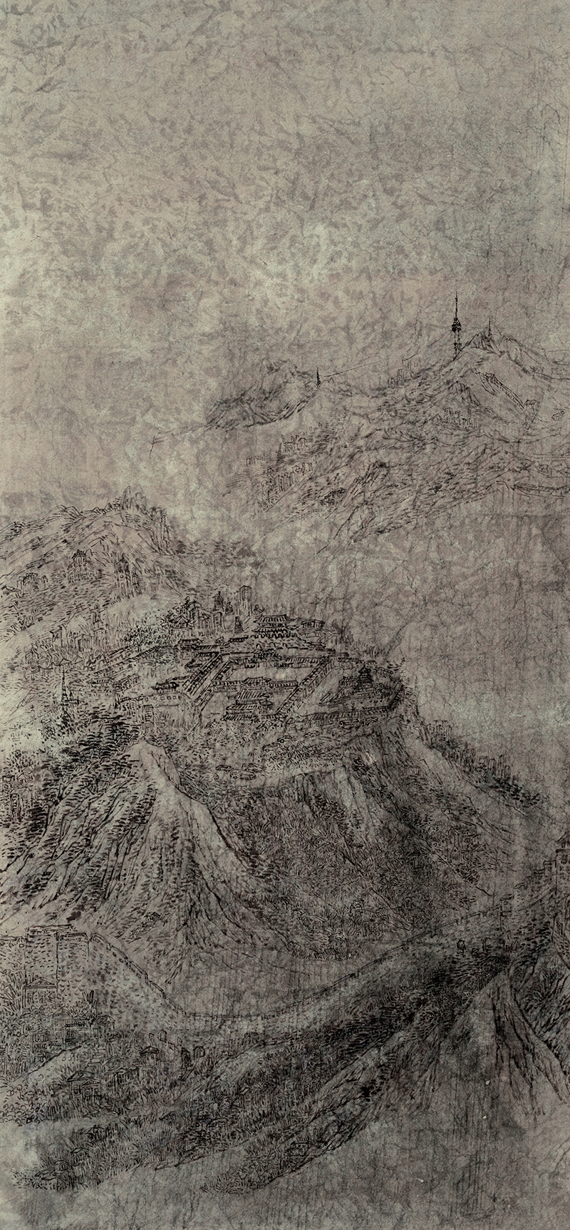 붉은 산수(경복궁), 화선지에 홍묵 수묵, 150x216cmx2ea, 2016~2017
