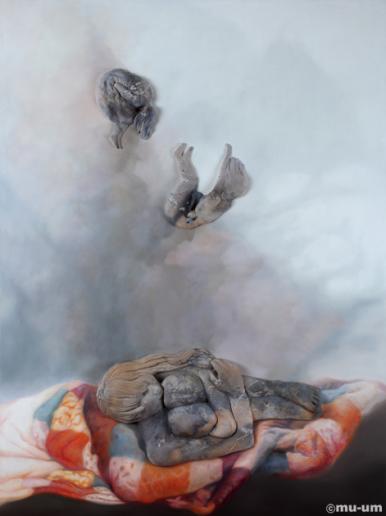 Deep Sleep, ceramic,oil on canvas, 97x130.3x11.5cm, 2010