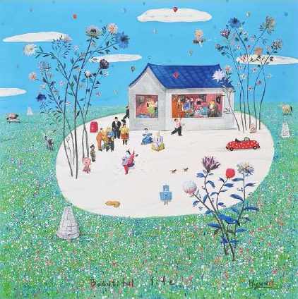 Happy Garden, 61x61cm, mixed media on canvas, 2017