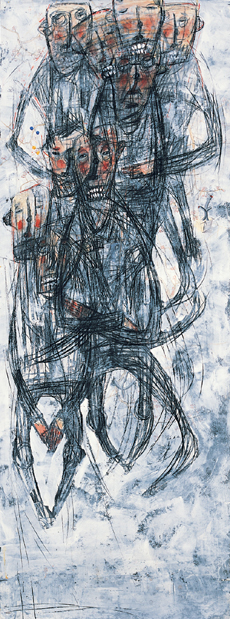 줄서기, 장지에 혼합재료, 250×110cm, 2010