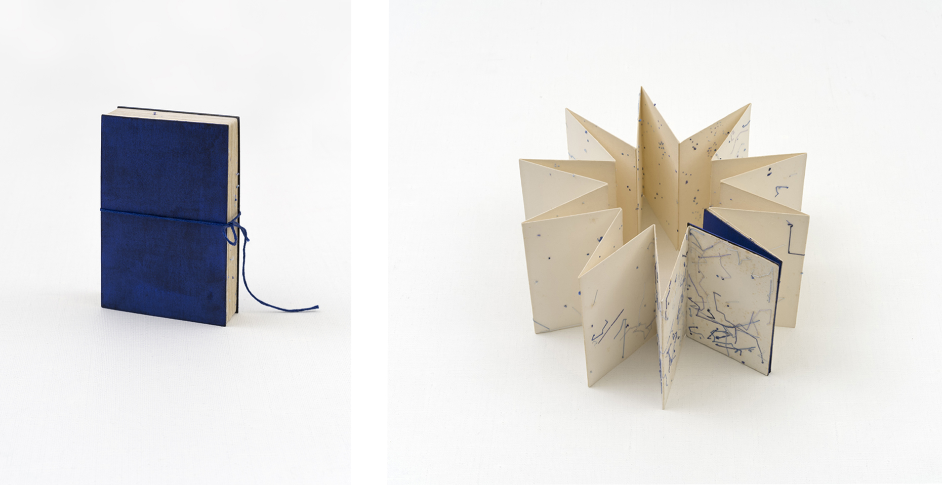 바람이 밤새도록 꽃밭을 지나간다, 36장의 바람드로잉을 종이에 인쇄하여 아코디언 구조로 제작,옆면에 색연필, 0.5×32×23.3㎝(가변크기), 2016