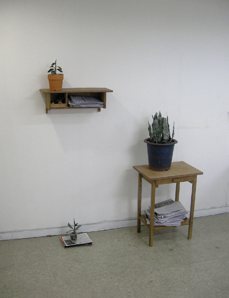 무제 그 곳에서 온 식물들 #1, #2, #3, 신문에 게재된 사진 속의 식물과 흙_신문지_화분_풀_목재, 가변크기, 2007