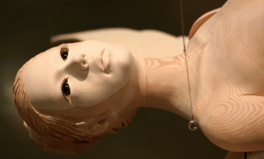 Marionette, (홍송,미송,전기모터,푸쉬버튼스위치,낚시줄,인조안구), 6110x110x220cm, 2008