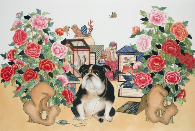 당구풍월(堂狗風月), 장지에 채색, 182x122cm , 2010