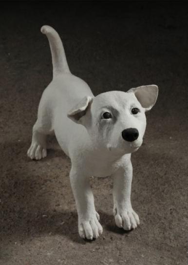 Jindo Dog, 21x56x36cm, terra-cotta, plastic clay, black clay, white slip, 2017