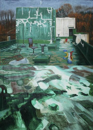 비온후 옥상, 마대천위에 오일, 145x224cm, 2010