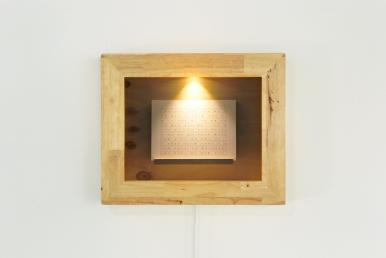 표준의 탄생, 집성목, led조명장치, 종이, 55×45×8.5cm, 2016-17