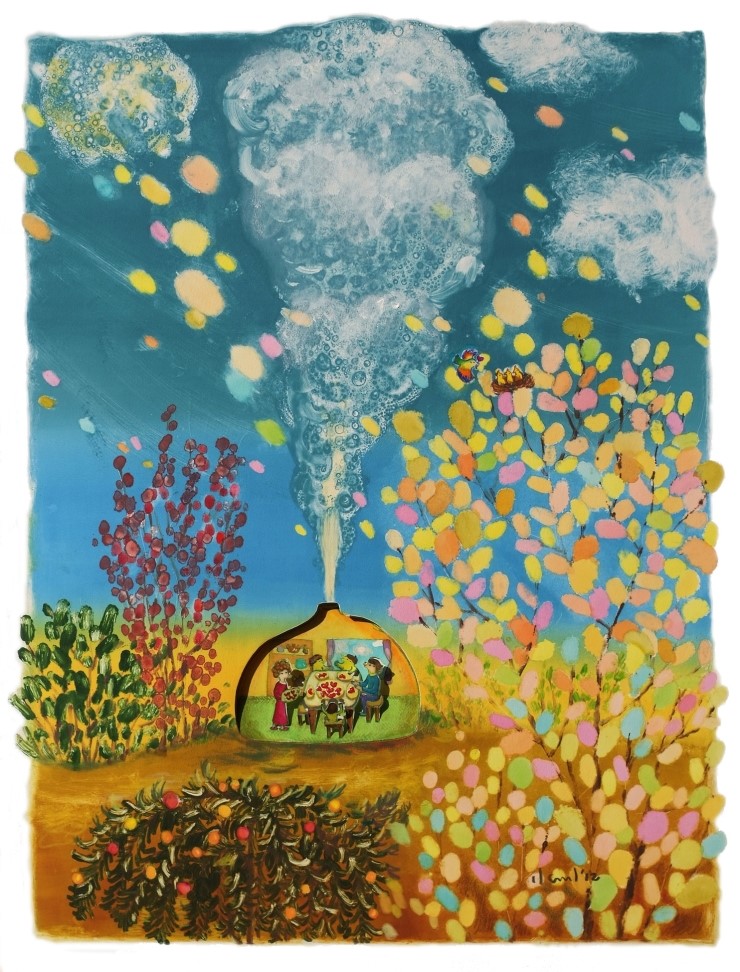 사랑의 식탁, 73x94cm, monotype, drypoint, pop-up, watercolor, 2012
