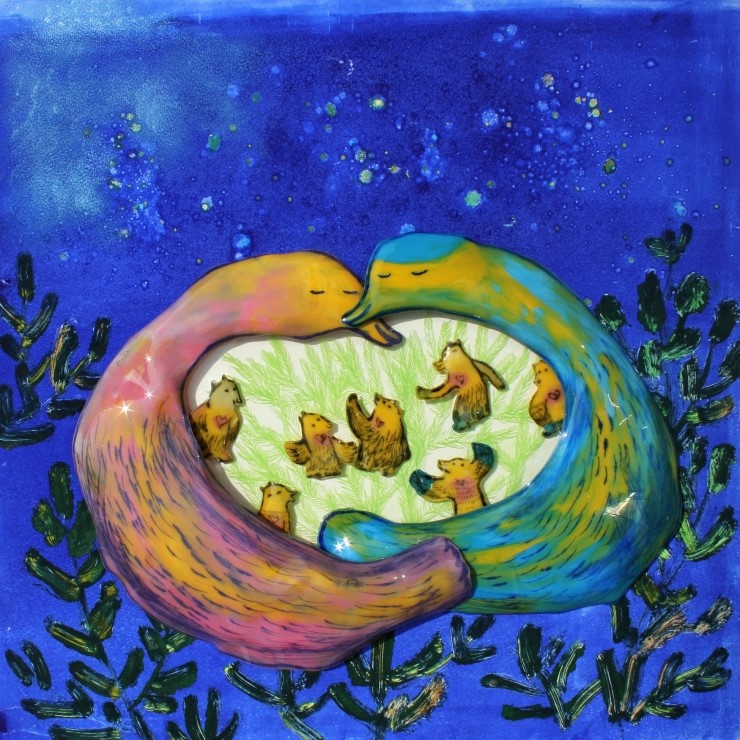 소풍, monotype, drypoint, water color, movement, 50x50cm, 2012