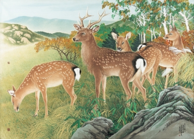 군록 群鹿 Herd of Deer, 1978, 종이에 수묵채색, 170.7×239cm, 고려대학교박물관