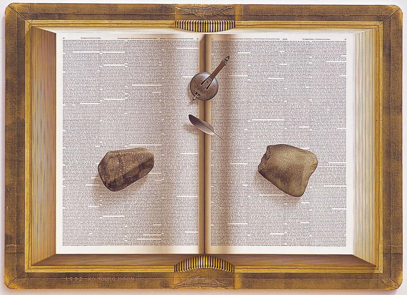 스톤북, 1985, 책 낱장에 아크릴릭 물감, 142x98cm