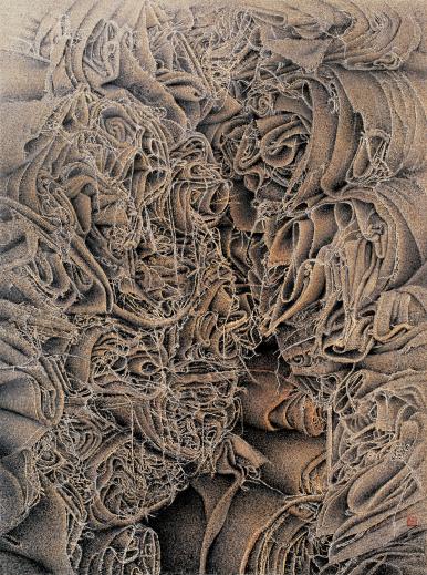 마대의 얼굴 The Face of Gunny Bag, 한지위에 먹과 유화물감 ink, oil paint on hanji, 139x181cm, 1983
