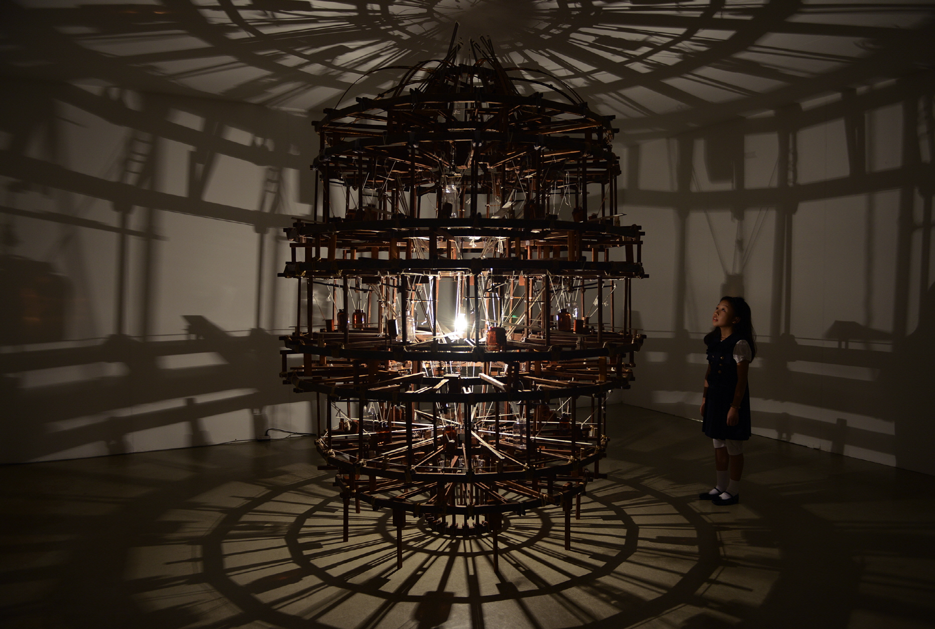 피곤은 언제나 꿈과 함께, 2013, 나무, 모터, 실, 백열등, 아크릴, 플라스틱 병, 300x197x197cm. 국립현대미술관 소장