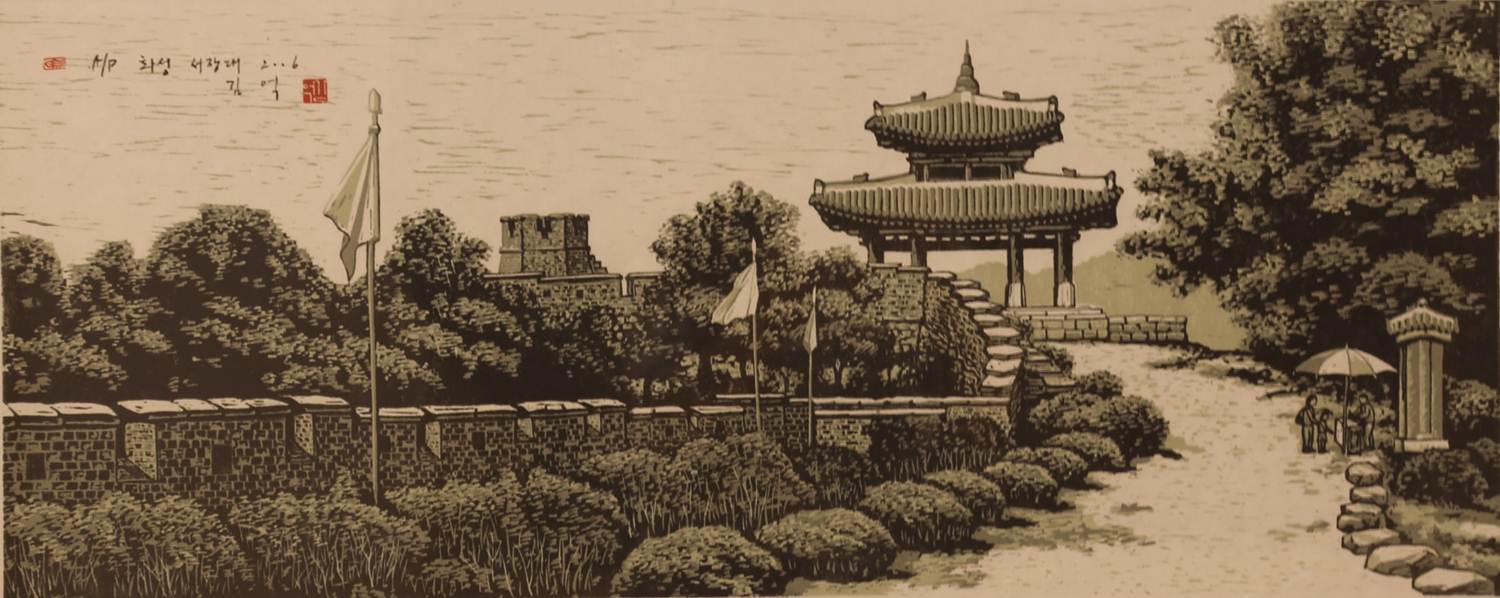 수원화성(서장대), 목판화, 30×76cm, 2006