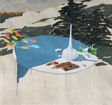생각의 테이블, 장지에 혼합채색_148.2x139.3cm_2018