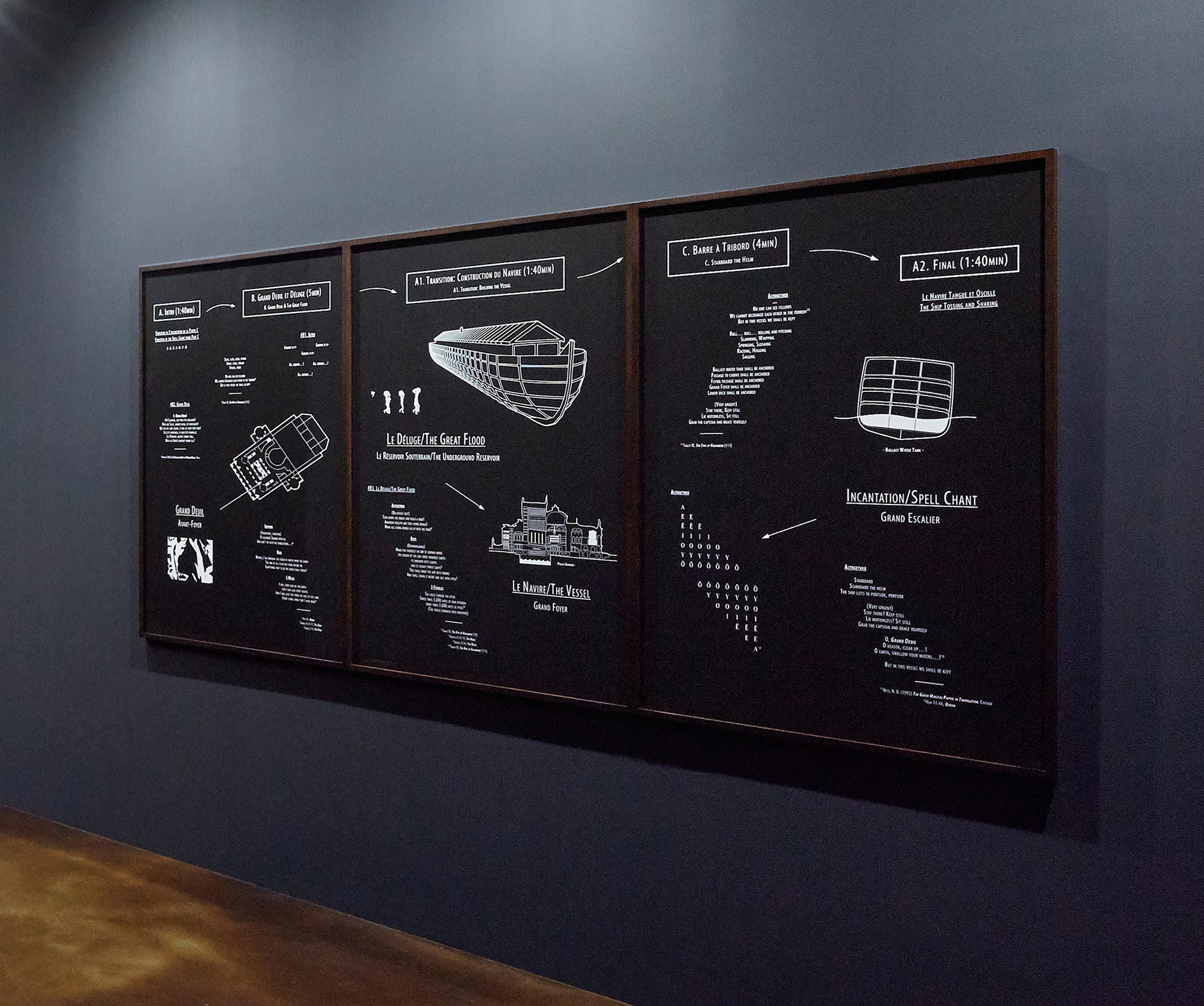 딜리버리 댄서의 선: 인버스, 2024, 3채널 비디오, 컬러, 2채널 사운드, 조명 설치, 무작위 영상 재생 및 조명 동기화 제어 프로그램, 해시계 조형물, 그래픽 시트, 원형 스크린, 대형 슬로프, 17분, 가변 크기. ACC 제작 지원