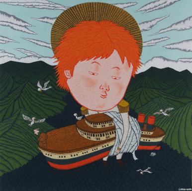 Signal boy, pigmented and acrylic on crushed rock on Korean paper, 130x97cm, 2011