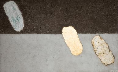 작가는 산책하듯 도시의 길을 따라나선다. 그리고 그 길 위에 산재해 있는 이미지들을 만나고 그것들을 수거한다. 대부분 도로 위와 그 주변에서 만나게 되는 흔한 이미지들이자 시간으로 덧칠된 추상적인 조형요소들이다. 그리고 그 이미지들은 작가의 특별한 의도와 기법을 통해 그만의 미감으로 치환된 개성적인 화면으로 표출된다. 도시라는 공간 속에서 시간의 의미를 새롭게 환기 시키고자 하는 의도가 시멘트와 종이라는 기본재료들을 중심으로 재구성되어 표현되는 것이다. 그런데 그중에서도 유별나게 눈에 띄는 조형요소가 하나 있다. 바로 금색 조형이다. 도시의 길 위에서는 좀체 만나보기 어려운 금색 조형이 어엿하게 자리하고 있는 것이다.