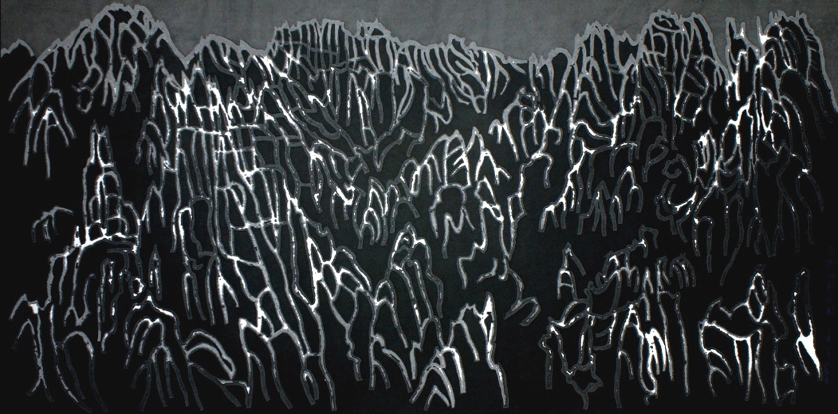 隣(Rhin)-曲線遊戱, 103x4123cm, 한지,먹,채색, 2003