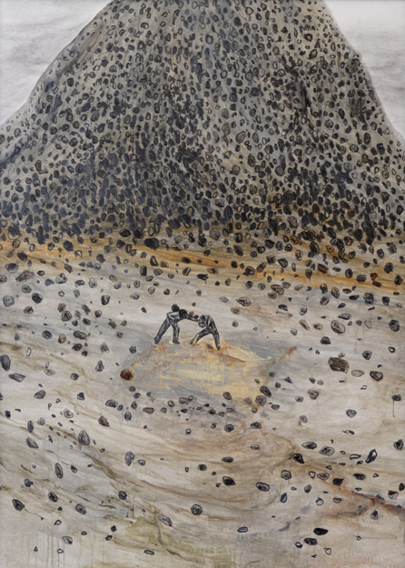 금이빨을 잃어버린 자가 찾아온 곳 Where the man who lost his golden tooth headed for, 130x135cm, Graphite on paper, oil color, 2018
